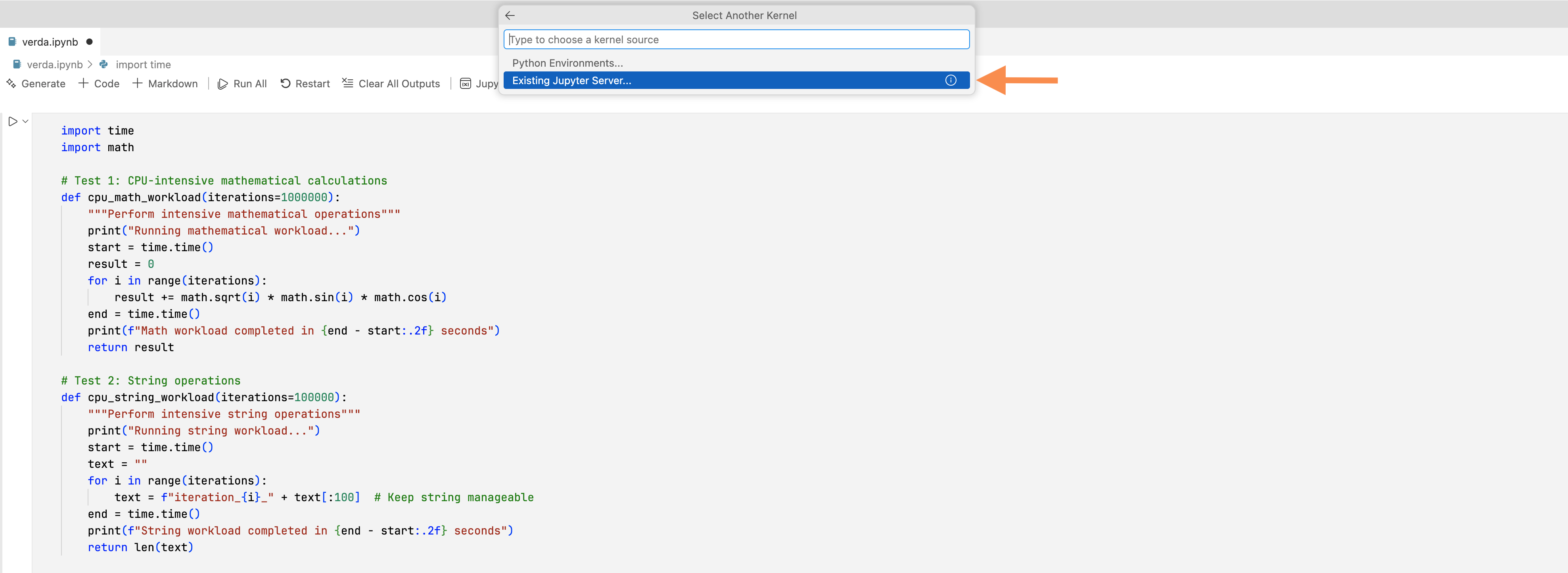 *.ipynb. Select Existing Jupyter Server.
