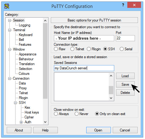 Alternatively, you can use your favorite SSH client to connect to the server. Below is an example using Putty:
