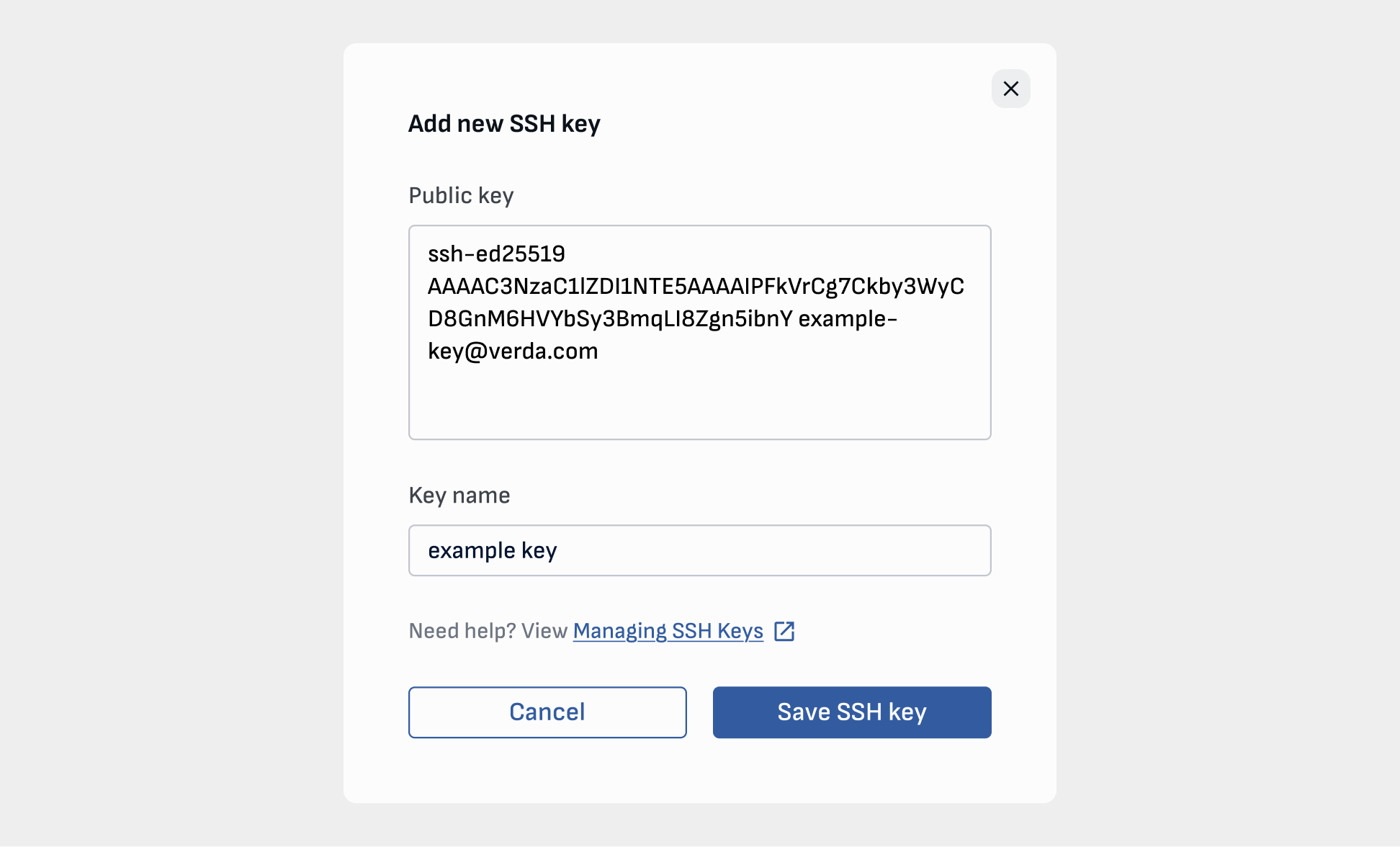 When setting up compute, you need to provide an SSH key to provide secure access to your server.