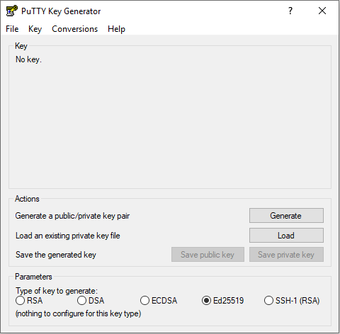 When installing Putty, you can choose to install PuttyGen as well, so let's fire it up: