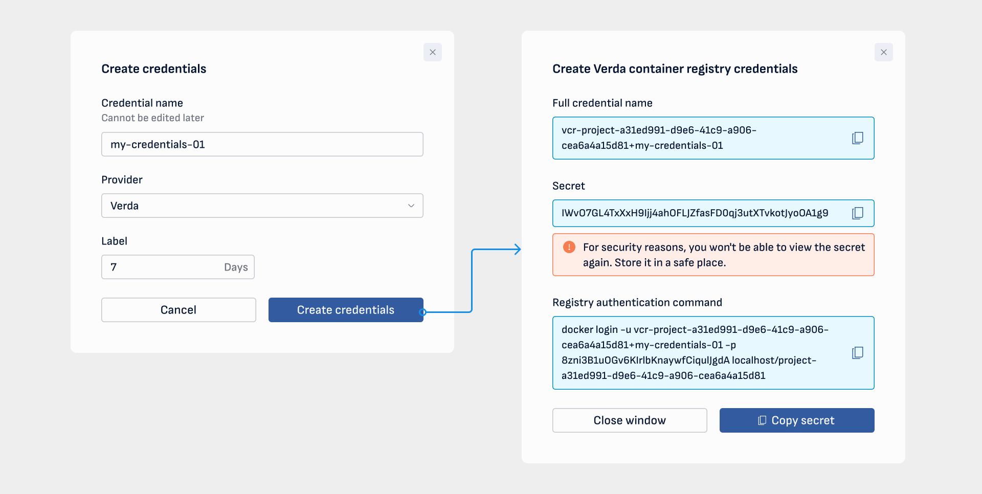 The credentials name will be prefixed with: vcr-<PROJECT_ID>+